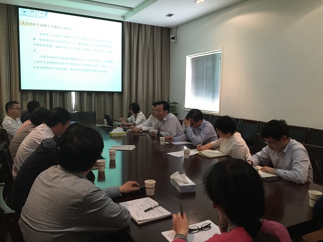 2015年5月5日下午,浙江大学人文社科专业相关学院研究生境外交流工作会议在研究生院241会议室召开。研究生院常务副院长王家平,研究生培养处副处长沈杰,培养处公派出国办相关老师及经济学院、法学院、管理学院、教育学院、马克思主义学院、人文学院、外语学院、传媒学院分管研究生国际交流工作的学院领导及研究生科科长参加了会议。