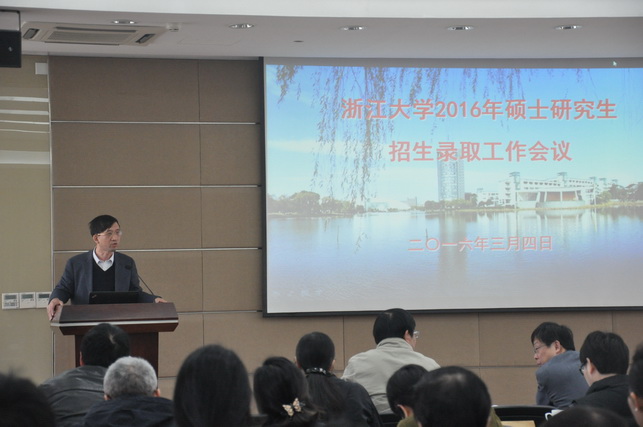 3月4日,浙江大学2016年硕士研究生招生录取工作会议在紫金港校区校友楼紫金港厅召开。副校长严建华、研究生院常务副院长王家平、副院长王立忠、各学院(系)分管研究生教育工作院长(系主任)、书记和研究生科科长、以及相关职能部门的负责人参加了会议。会议由王家平主持。