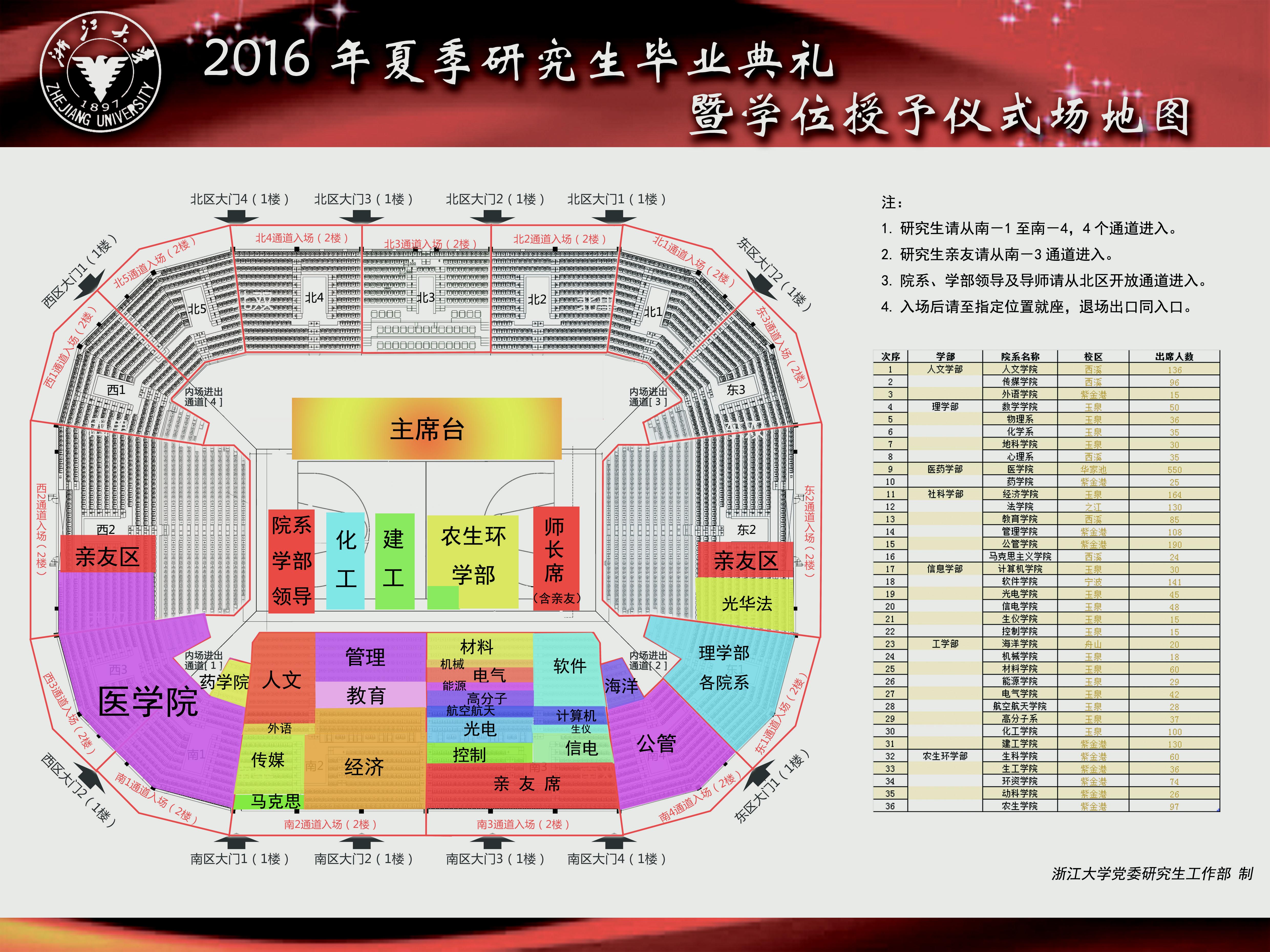 7.请各院系负责学位授予仪式组织工作的老师在6月27日下午14:00到紫金港校区体育馆参加筹备会,同时熟悉自己院系的场地和学位授予仪式程序。场地安排见附件2(6月25日前更新)。