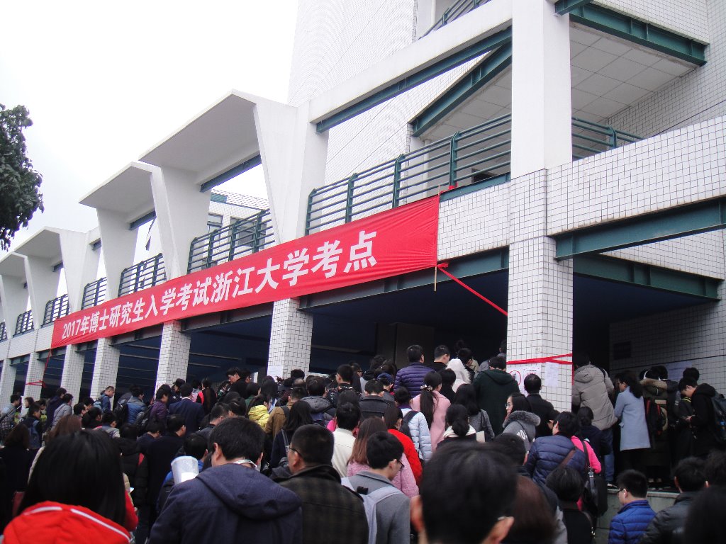 浙江大学2017年博士研究生入学考试初试3月11日于紫金港校区进行。2017年我校博士生报考人数4180名。今年我校有18个学院(系)实施“申请-考核”制,通过对考生英语水平和专业水平的初审,有280名考生通过审核直接进入学院(系)组织的下一阶段考核,320名考生因相关条件不符合而没有通过初审,实际参加本次初试的考生3500余名。初试科目为外国语和专业基础课,每门课程考试时间为3个小时。