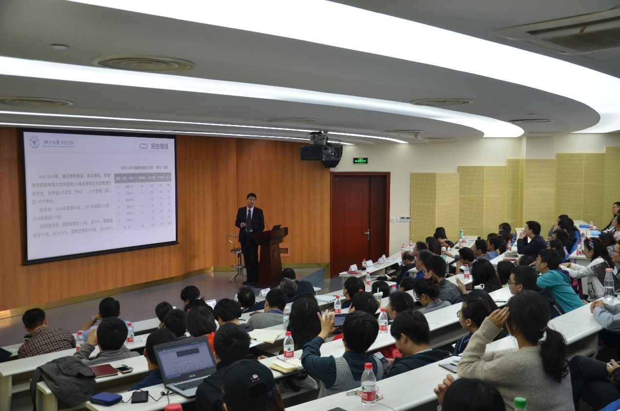 开班仪式结束后,研究生院副院长叶恭银为同学们作了新生始业教育报告:《新时代、新征程,做具有全球竞争力的交叉培养人才》。叶恭银教授结合国际学科前沿及十九大报告中加快一流大学和一流学科建设,实现高等教育内涵式发展的内容,向同学们介绍了在这样的时代背景下,浙江大学多学科交叉培养博士研究生应有的核心任务、培养目标和社会责任,勉励在座的各位同学将浙大人肩负的时代责任铭刻于心,胸怀远大抱负,夯实专业基础,通过学科交叉培养提升自己的综合能力,将个人梦融入浙大梦、中国梦,为学校的发展、社会的进步、国家的富强与民族的振兴奉献自己的青春与力量。