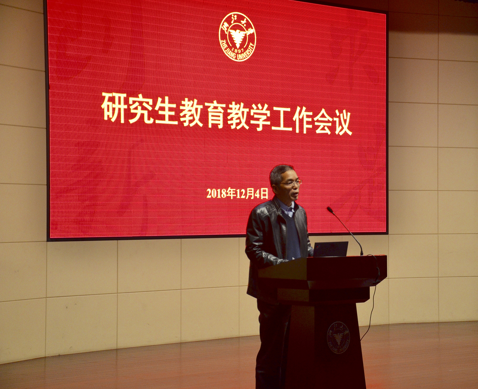 浙江大学副校长严建华首先致辞,充分肯定了我校研究生教育取得的成绩及在我校双一流建设进程中的巨大贡献,并提出打造世界卓越研究生教育的要求。同时,他在讲话中强调了我校2019年研究生教育的攻坚方向:一、改革研究生招生计划结构,不断深化“减硕增博”改革试点;二、推进博士研究生教育综合改革进程,不断提高博士研究生教育质量;三、加大力度做好研究生教育过程管理,加强过程环节考核,建立起严格的动态分流机制,提高博士生培养质量。