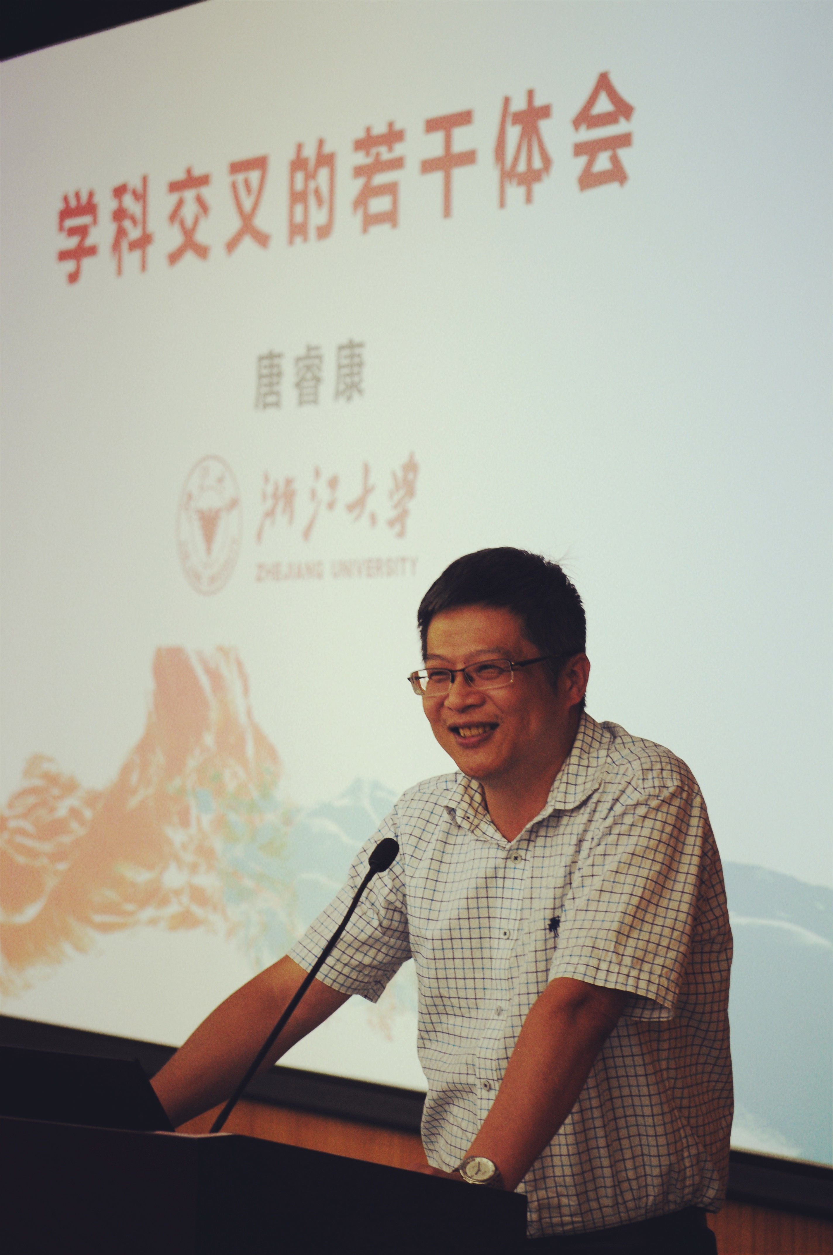最后,导师代表唐睿康教授为全体参会人员作了“学科交叉的若干体会”的主题报告。唐老师从最新学科交叉成果“两滴药水,长出牙釉质”切入主题,结合自己一系列的科学研究,指出学科交叉的使命是:打破原有学科的思维定式、完成“不能完成的任务”、为未来发展提供科学基础;对在座的学生提出了“敢于跨界、善于学习;学会沟通、成为桥梁;交叉是工具、而不是目的”三个建议,提醒同学们要“不忘初心、坚持不懈、面向明天”,激励同学们追寻科学的突破与原创性,吸收导师们的优点并超越之。