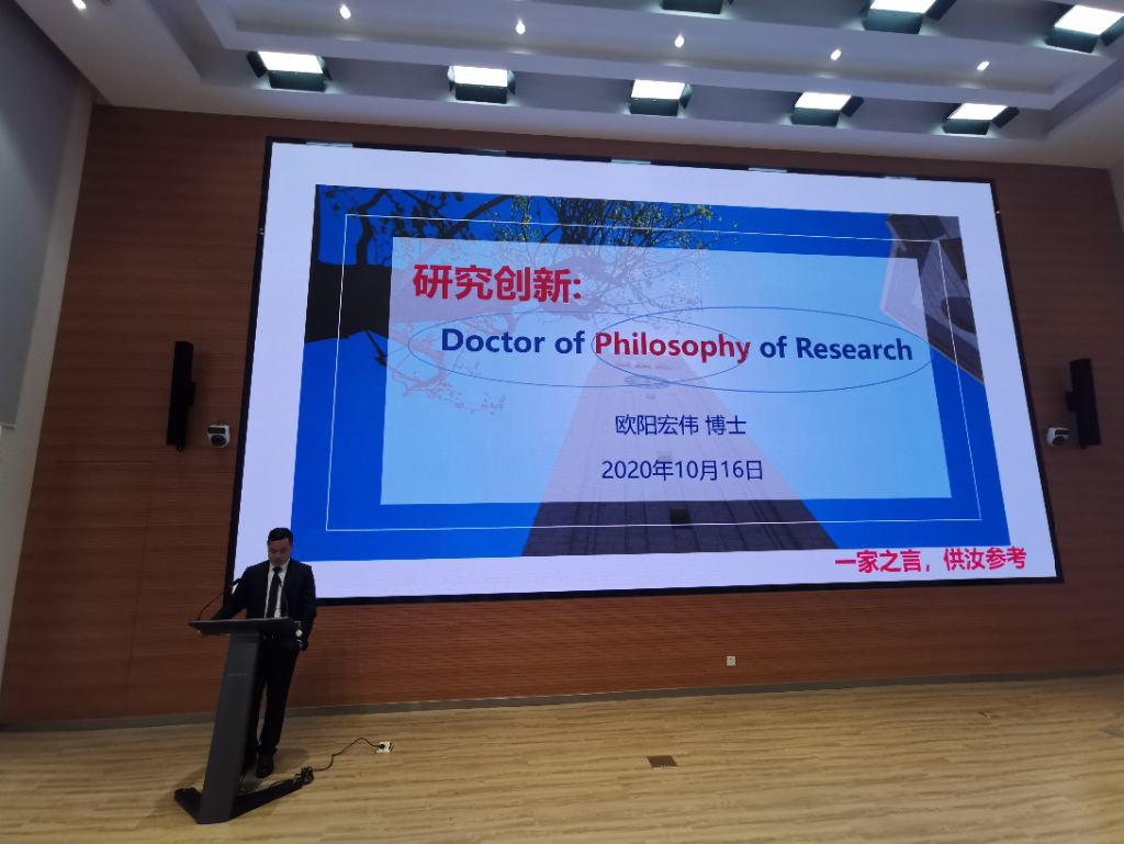 最后,导师代表欧阳宏伟教授为全体参会人员作了“如何开展交叉科学研究”的主题报告。欧阳教授从如何看待研究、如何开始做研究、如何与人合作三方面展开并分享了自己多年的交叉科研经历以及培养交叉科研人才的模式,希望同学们充分利用导师资源,积极做好目标的预期管理;学会思维自由,纵横哲学;把握趋势,以史为鉴开展创新活动;以终为始地计划,念念不忘地执行,大成若缺的接受;希望同学们在做好研究的同时,也要成为一个身心健康、富有情怀的幸福人。