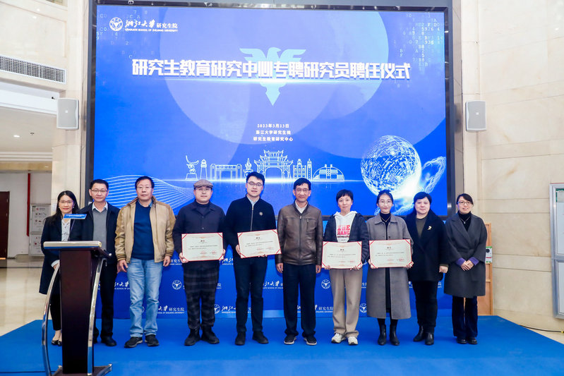 为聚集团结浙江大学研究生教育研究人才,形成一支强大的学术人才队伍,积极开展研究生教育研究,打造中国研究生教育研究高地,研究生教育研究中心特聘任10位专家任中心专聘研究员。严建华主任上台为专聘研究员代表颁发聘书并合影留念。