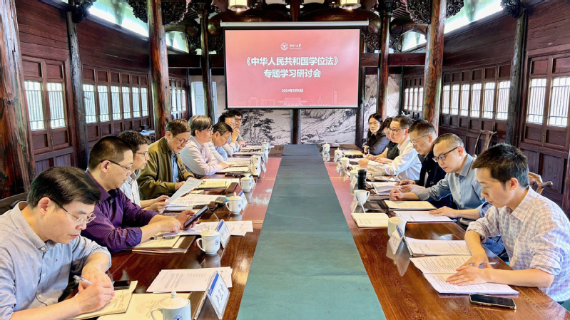 2024年4月26日,第十四届全国人民代表大会常务委员会第九次会议表决通过《中华人民共和国学位法》(以下简称“《学位法》”),自2025年1月1日起施行。为贯彻落实《学位法》,坚持和加强党对教育工作的全面领导,坚守求是初心,勇担使命,扎根铸魂,5月6日下午,研究生院在紫金港校区举行《学位法》专题学习研讨会。