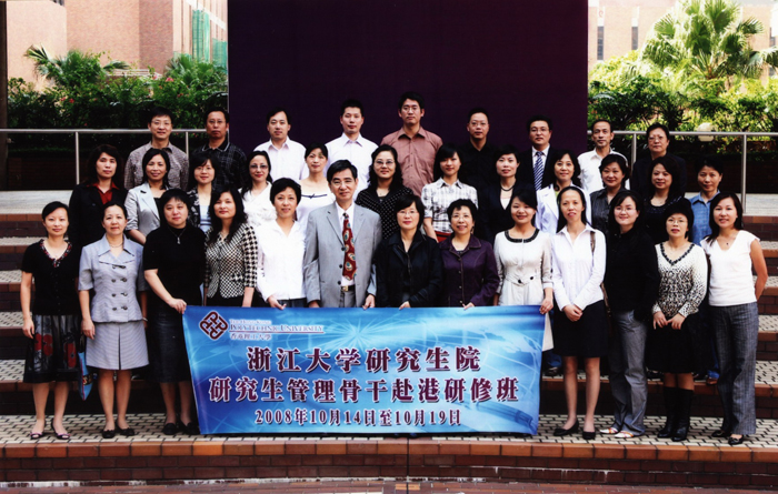 In order to improve the graduate education management, the graduate school and the organization department of the university party committee provided a 6-day training for the graduate management elites in Hong Kong Polytechnic University. This training lasted until October 19th.2008. The training class, led by Vice Department Chief of the graduate management office Xiaoli Jiang, comprised 30 trainees. Most of them are the experienced graduate education section chief from different colleges. The training courses contained interactive lectures, on-the-spot investigation, experience sharing, etc. After the training our university's graduate management elites were well informed of the characteristic of Hong Kong's advanced education and the management system. This training received full support from the organization department of the university party committee, the graduate school and Zhejiang University-Hong Kong Polytechnic University International Business Training Center.