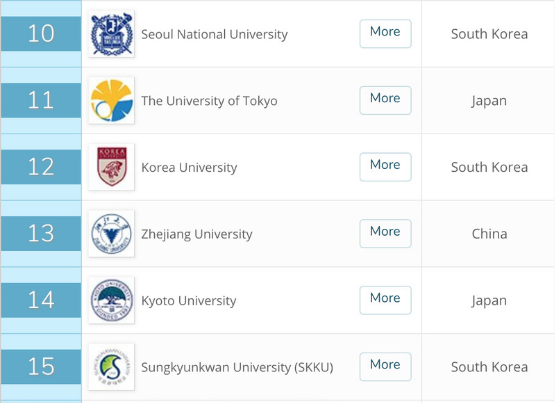 This year, the number of universities featured in the QS Asia rankings is increased from 450 to 505. With 111 featured universities, Chinese Mainland has made impressive progress in the rankings. Five of them are listed in the top 20, including Tsinghua University at 3rd, Peking University at 5th, Fudan University at 6th and Shanghai Jiao Tong University at 19th, all improving their position. As Ben Sowter, Research Director at QS puts it, Mainland China's impressive investment in education and research is paying off”.