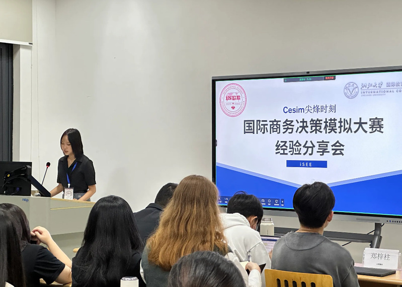 To enhance international students' business decision-making skills and management capabilities, and to raise awareness of the International Business Simulation Competition, an experience sharing session was successfully held at the International College of Zhejiang University on October 17.