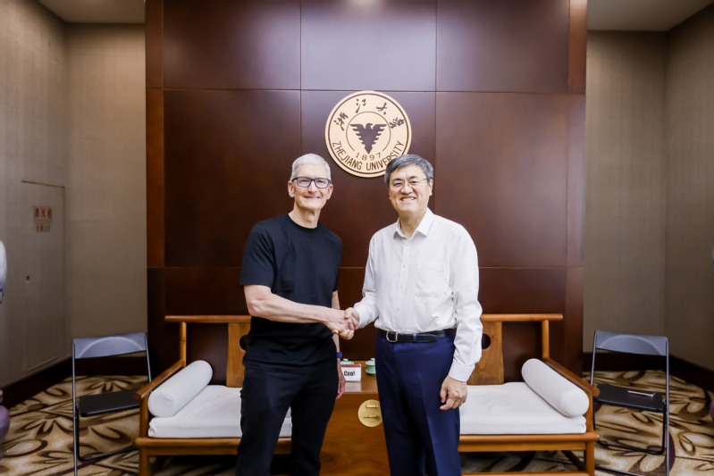 Apple CEO Tim Cook visited Zhejiang University (ZJU) on March 26, 2025, to attend the 10th Mobile Application Innovation Competition, a joint initiative with ZJU since 2016. Apple announced a 30 million yuan donation to support Chinese students in coding education and their training in app development, design, marketing, and business operations.